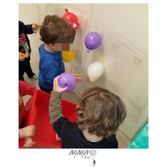 📝 Αρχικά, φουσκώνουμε τα μπαλόνια άλλα πιο μικρά άλλα λίγο πιο μεγάλα. Έπειτα, κολλάμε στον τοίχο την αυτοκόλλητη διαφάνεια και αφού έχουμε μαζέψει τα μπαλκόνια σε ένα καλάθι τα δίνουμε στα παιδιά. Τέλος, για να αρχίσει το παιχνίδι μπορούμε εμείς να κολλήσουμε μερικά μπαλόνια πάνω στην διαφάνεια.